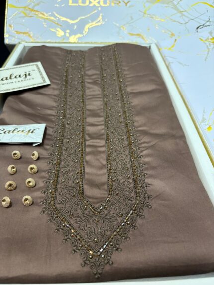 LUXURY HANDWORK EMBROIDERY GIZA COTTON BROWN D | 32 Original price was: ₹3,850.00.Current price is: ₹3,250.00.