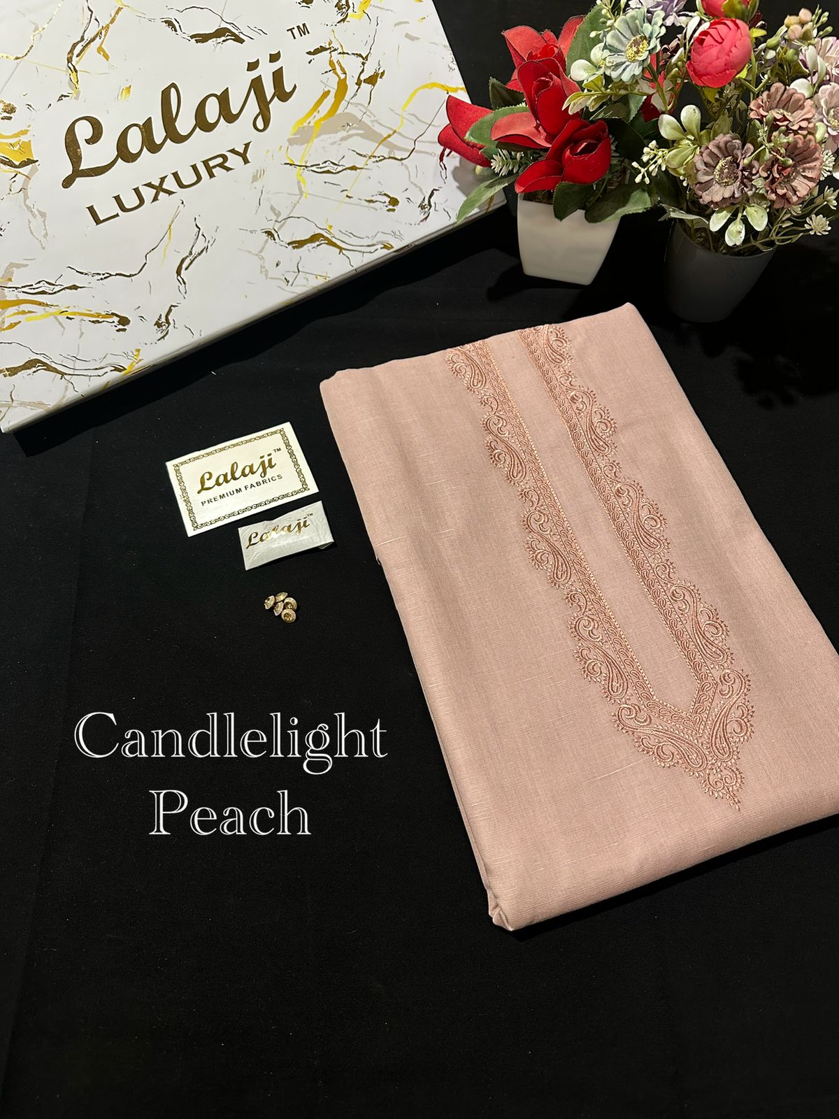 LUXURY LINEN EMBROIDERY WORK CANDLELIGHT PEACH \ D 29