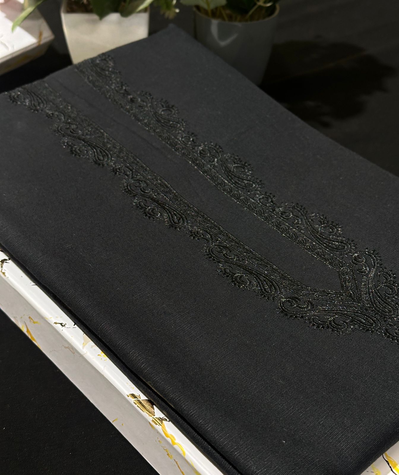 LUXURY LINEN EMBROIDERY WORK SHADOW BLACK \ D 29